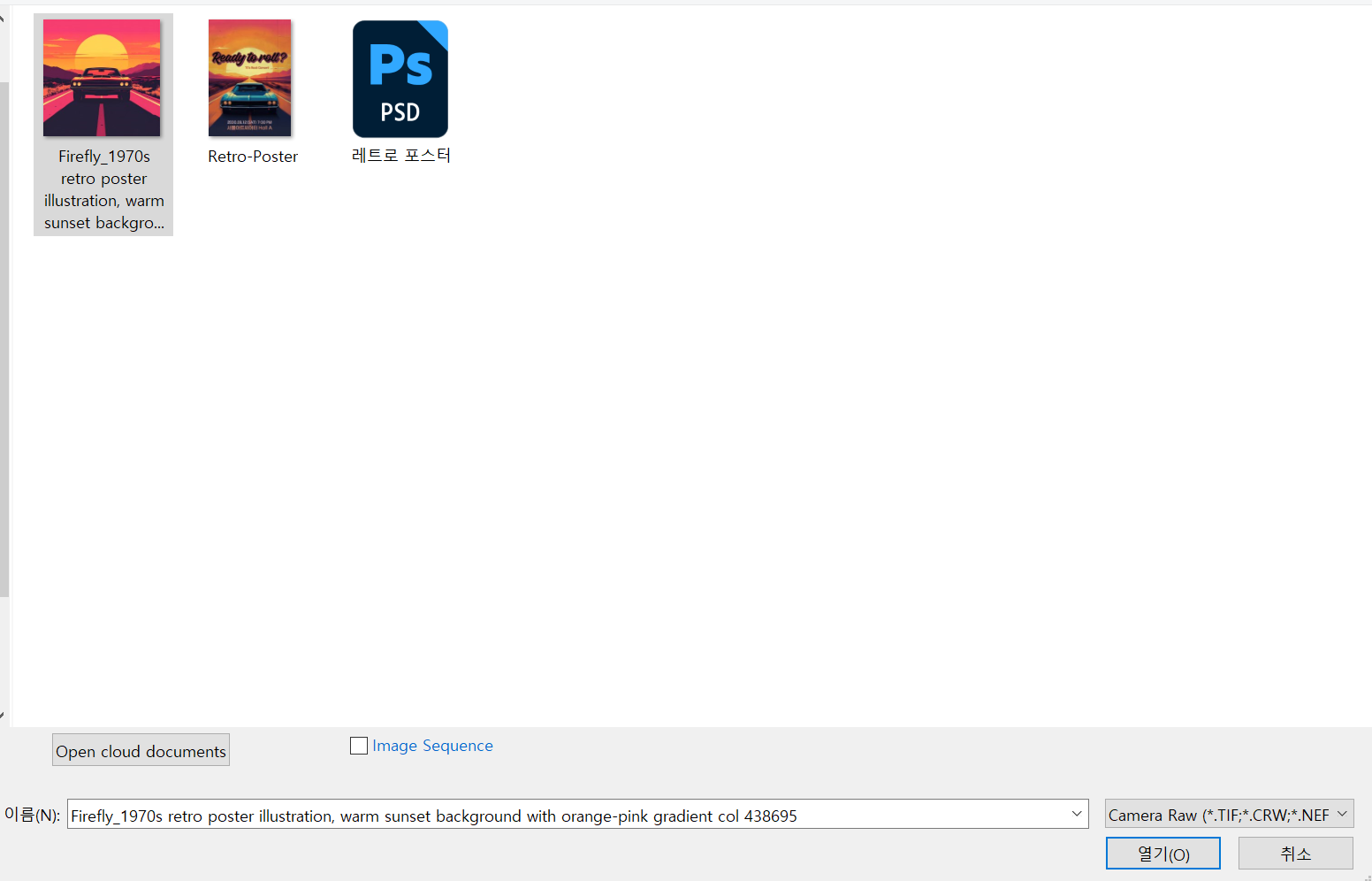 > Ctrl+Shift+Alt O : 포맷 형식 Camera Raw 선택