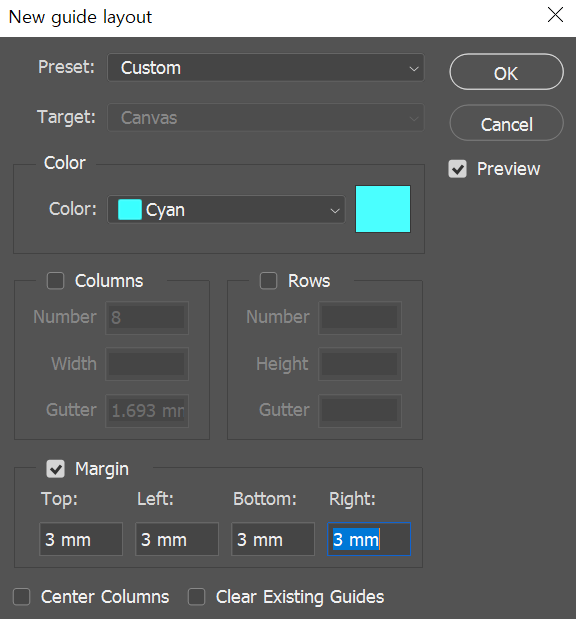 - View > Guides > New Guide Layout